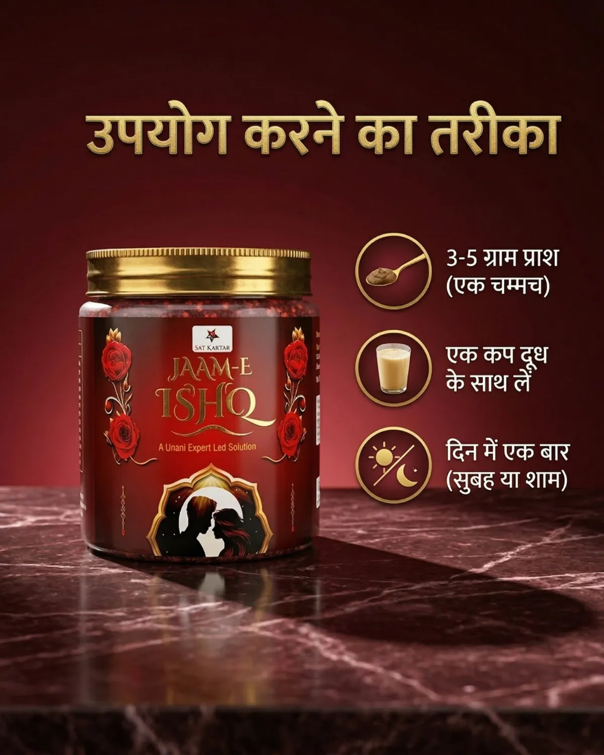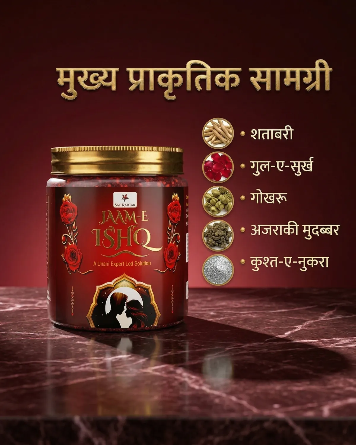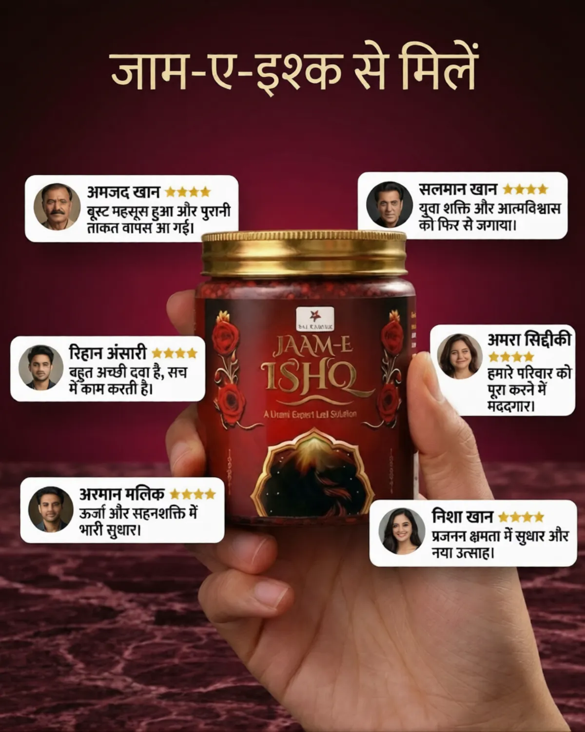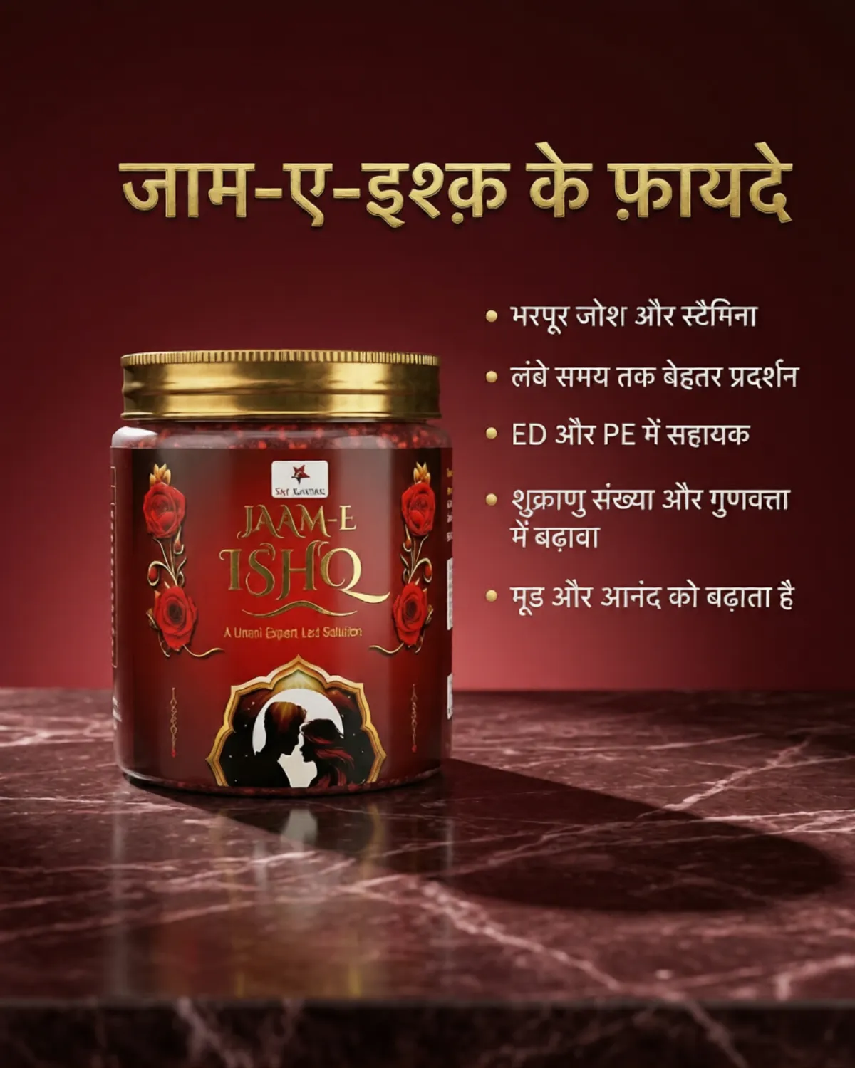 जाम-ए-इश्क़ एक प्रीमियम आयुर्वेदिक फार्मूला है जो आपकी शारीरिक शक्ति और जोश को प्राकृतिक रूप से बढ़ाता है। यह थकान दूर कर शरीर में नई ऊर्जा भर देता है।